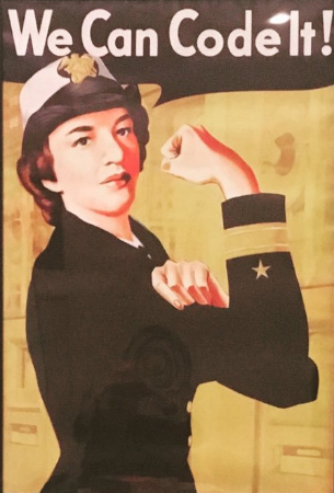 Suite à ce parcours universitaire, elle s’engage en 1943 dans la marine américaine où – grâce à ses études – elle est directement promue au grade de lieutenant. L’US Navy l’affecte au Cruft Laboratory de l’université d’Harvard et elle rejoint l’équipe de Howard Aiken, en charge du développement du premier ordinateur numérique le Harvard Mark I. Seules 3 personnes sont habilités à apprendre à coder sur cette machine et Grace Hopper en fait partie. Elle produira d’ailleurs un manuel complet de 500 pages, traitant des principes élémentaires de fonctionnement d’une machine informatique.